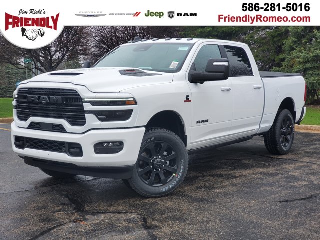 For Your Best Deal it's Jim Riehl's Friendly of Romeo. Browse our online inventory, schedule a test drive, get your trade appraised or investigate finance options. All hassle free! All new vehicles are based on Stellantis Employee Discount.2026 Ram 2500 Laramie Bright White Clearcoat 4WD 6.7L I6 8-Speed Automatic$10,744 off MSRP!We encourage you to browse our online inventory, schedule a test drive, investigate financing options, or get your trade appraised. You can also request more information about a vehicle using our online Contact Us form or by calling us. At Jim Riehl’s Friendly of Romeo we have taken every measure to ensure that our dealerships offer the very best new and used car buying experience. With so much to offer it's no wonder so many Metro Detroit Michigan residents have relied on Jim Riehl's Friendly of Romeo for all of their automotive needs.Check out all the standard equipment Cold Weather Group (Engine Block Heater and MOPAR Winter Front Grille Cover), Laramie Level 2 Plus Equipment Group (#1 Seat Foam Cushion, 115V Auxiliary Rear Power Outlet, 14.4 Touchscreen Display, 17 Speaker Harman/Kardon Premium Sound, 2 Way Rear Headrest Seat, 2nd Row in Floor Storage Bins, 4 Way Front Headrests, 4G LTE Wi-Fi Hot Spot, Active Lane Management System, Adaptive Steering System, Alexa Built-in, Anti-Spin Differential Rear Axle, Apple CarPlay, Auto Adjust in Reverse Exterior Mirrors, Auto Dim Exterior Mirror, Auto High Beam Headlamp Control, Auto Power-Folding Mirrors, Auto-Dimming Exterior Passenger Mirror, Bucket Seats, Center Stop Lamp with Cargo View Camera, Chrome Exterior Mirrors, Connected Travel and Traffic Services, Connectivity - US/Canada, Disassociated Touchscreen Display, Drowsy Driver Detection, Dual Wireless Charging Pad, Emergency Vehicle Alert System (EVAS), Exterior Mirrors Courtesy Lamps, Exterior Mirrors with Heating Element, Exterior Mirrors with Memory, Exterior Mirrors with Supplemental Signals, Foam Bottle Insert (door Trim Panel), Folding Flat Load Floor Storage, For Details, Visit DriveUconnect.com, For More Info, Call 800-643-2112, Forward and Reverse Utility Lights, Front Seat Back Map Pockets, Full Length Upgraded Floor Console, Global Telematics Box Module, Google Android Auto, GPS Antenna Input, GPS Navigation, HD Radio, Heated Front Seats, Heated Steering Wheel, High Back Seats, Integrated Voice Command with Bluetooth, Leather Trimmed Bucket Seats, LED Bed Lighting, Mirror Running Lights, MOPAR Deployable Bed Step, MOPAR Spray in Bedliner, Off-Road Info Pages, Power 2-Way Driver Lumbar Adjust, Power 2-Way Passenger Lumbar Adjust, Power Adjust 8-Way Driver Seat, Power Adjust 8-Way Front Passenger Seat, Power Adjust Mirrors, Power Adjustable Pedals with Memory, Power Deployable Running Boards, Power Heated Fold Telescopic Mirrors with Memory, Power Telescoping Mirrors, Power-Adjustable Convex Aux Mirrors, Radio: Uconnect 5 Nav with 14.4 Display, Radio/Driver Seat/Mirrors/Pedals Memory, Rain Sensitive Windshield Wipers, Rear 60/40 Folding Seat, Remote Tailgate Release, Selectable Tire Fill Alert, SiriusXM Radio Service, SiriusXM with 360L, Traffic Sign Recognition, Trailer Tow Pages, and Ventilated Front Seats), Night Edition (Black Exterior Mirrors, Black Exterior Truck Badging, Black Wheel Center Hub, Body Color Grille-Surround, Gloss Black Grille Billets/Accents, Sport Performance Hood, and Wheels: 20 x 8.0 Black Painted Aluminum), Quick Order Package 24H Laramie, Towing Technology Group (MOPAR Trailer Camera Wiring with No Camera, Surround View Camera System, Trailer Reverse Guidance, and Trailer Tire Pressure Monitoring System), 10 Speakers, 4-Wheel Disc Brakes, 5th Wheel/Gooseneck Towing Prep Group, ABS brakes, Air Conditioning, Alloy wheels, AM/FM radio: SiriusXM with 360L, Apple CarPlay/Android Auto, Auto Level Rear Air Suspension, Auto-dimming Rear-View mirror, Automatic temperature control, Brake Price includes: $1000 - 2026 National Bonus C