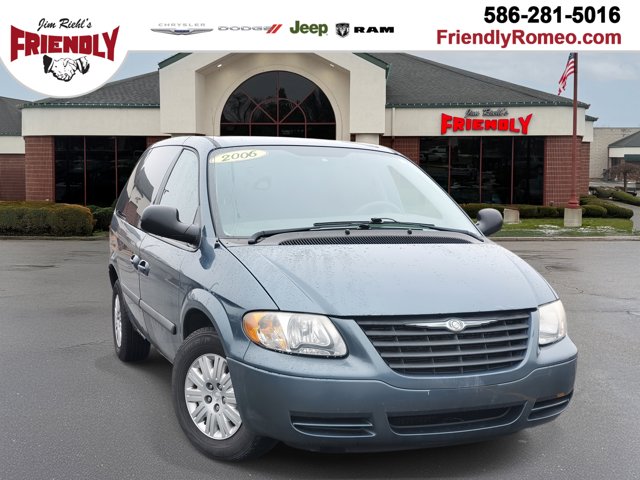 For Your Best Deal it's Jim Riehl's Friendly of Romeo. Browse our online inventory, schedule a test drive, get your trade appraised or investigate finance options. All hassle free! Value Market Pricing and Free CarFax with every vehicle.2006 Chrysler Town & Country Base Magnesium Pearlcoat 3.3L V6 OHV 4-Speed Automatic FWD 19/26 City/Highway MPGClean CARFAX. CARFAX One-Owner. 4D Passenger Van, 4-Speed Automatic, FWD, Magnesium Pearlcoat, Dk Khaki/Lt Graystone Cloth.We encourage you to browse our online inventory, schedule a test drive, investigate financing options, or get your trade appraised. You can also request more information about a vehicle using our online Contact Us form or by calling us. At Jim Riehl’s Friendly of Romeo we have taken every measure to ensure that our dealerships offer the very best new and used car buying experience. With so much to offer it's no wonder so many Metro Detroit Michigan residents have relied on Jim Riehl's Friendly of Romeo for all of their automotive needs.Check out all the standard equipment Quick Order Package 28F, 4D Passenger Van, 4-Speed Automatic, FWD, Magnesium Pearlcoat, Dk Khaki/Lt Graystone Cloth, 15 x 6.5 Steel Wheels, 3.62 Axle Ratio, 3rd row seats: bench, 4 Speakers, Air Conditioning, AM/FM Compact Disc w/Changer Control, AM/FM radio, Bodyside moldings, Bumpers: body-color, CD player, Cloth Low-Back Bucket Seats, Delay-off headlights, Deluxe Bench Seats w/Rear Bench, Driver door bin, Driver vanity mirror, Driver's Seat Mounted Armrest, Dual front impact airbags, Front anti-roll bar, Front Bucket Seats, Front reading lights, Front wheel independent suspension, Illuminated entry, Knee airbag, Normal Duty Suspension, Occupant sensing airbag, Panic alarm, Passenger door bin, Passenger seat mounted armrest, Passenger vanity mirror, Power steering, Power windows, Rear window defroster, Rear window wiper, Reclining 3rd row seat, Remote keyless entry, Speed control, Tilt steering wheel, and Variably intermittent wipers.