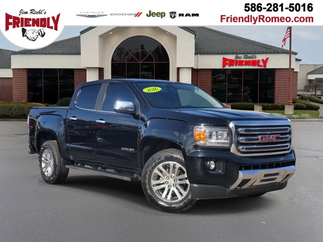 Elevate your driving experience with this exceptional 2016 GMC Canyon SLT. This powerful and versatile midsize truck is the perfect blend of capability, technology, and style, making it the ideal choice for those seeking a vehicle that can handle any adventure with ease.- Soft Folding Tonneau Cover (LPO)- Black Spray-On Bed Liner w/GMC Logo- 5 Rectangular Chrome Assist Steps (LPO)- Bose Premium 7-Speaker Audio System Feature- Driver Alert Package- Preferred Equipment Group 4LTUnder the hood, this Canyon SLT boasts a potent 3.6L V6 DGI DOHC VVT engine, paired with a 6-speed automatic transmission and 4-wheel drive, delivering a thrilling and confident driving experience. With an impressive 17 city and 24 highway MPG, you'll enjoy the perfect balance of power and efficiency.The exterior of this Canyon SLT is adorned in a sleek and sophisticated Black finish, complemented by a host of premium features. The soft-folding tonneau cover and black spray-on bed liner with the GMC logo provide both style and functionality, while the 5-inch rectangular chrome assist steps offer easy access to the cabin.Step inside and you'll be greeted by a wealth of advanced technology and premium amenities. The 8-inch diagonal color touch screen navigation system with IntelliLink provides seamless connectivity, allowing you to stay connected and entertained on the go. The Bose premium 7-speaker audio system delivers an immersive listening experience, while the driver alert package, including features like forward collision alert and lane departure warning, helps keep you and your passengers safe.Comfort and convenience are also at the forefront, with heated front seats, a power driver's seat, and a leather-appointed interior that exude a sense of luxury. The soft-folding tonneau cover and chrome recovery hooks add both style and functionality, making this Canyon SLT the perfect companion for your next adventure.Whether you're tackling challenging terrain, hauling heavy loads, or simply enjoying the open road, this 2016 GMC Canyon SLT is the perfect vehicle to elevate your driving experience. Visit our showroom today and let us demonstrate why this exceptional truck should be your next automotive purchase.