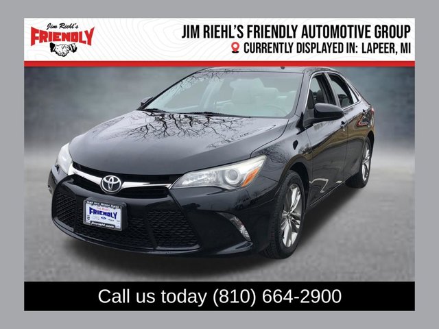 This Vehicle is currently located in Lapeer. Welcome to Jim Riehl's Friendly Chrysler Dodge Jeep Ram of Lapeer. Just North of FCA Headquarters on Lapeer Road South of I69. We are delivering vehicles Daily. To your home or office. Please call us today 810.664.2900.2017 Toyota Camry SE Midnight Black Metallic 2.5L I4 SMPI DOHC 6-Speed Automatic FWDAsh w/Fabric Seat Trim, ABS brakes, Alloy wheels, Electronic Stability Control, Heated door mirrors, Illuminated entry, Low tire pressure warning, Remote keyless entry, Traction control. 24/33 City/Highway MPGhttps://www.kbb.com/kbbreport/olgib