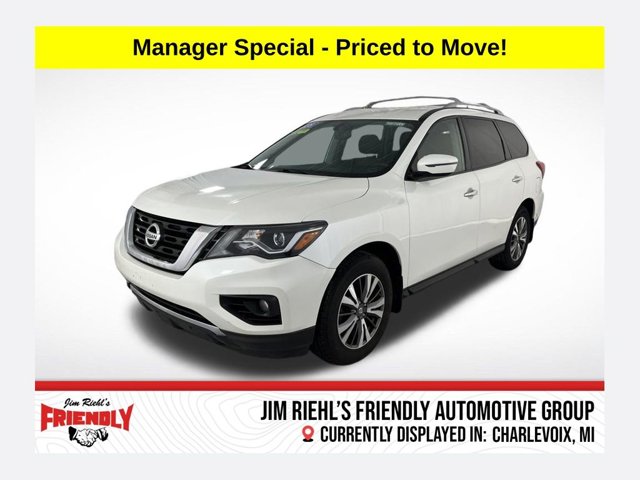 Welcome to Jim Riehl’s Friendly Ford of Charlevoix! Thank you for stopping by to take a look at this 2018 Nissan Pathfinder SV. This is a fresh piece of inventory for our lot and is making its way through our reconditioning process. Please inquire about it still as the vehicle may be close to getting ready. Thank you for choosing Jim Riehl’s Friendly Ford for your vehicle needs. We look forward to exceeding your expectations!! Call, Click or stop by today to see why everyone is choosing Jim Riehl for their next vehicle!2018 Nissan Pathfinder SV Pearl White V6 CVT with Xtronic 4WD19/26 City/Highway MPG4WD Four Wheel Drive, Back Up Camera, Bluetooth Equipped, 3rd row seats: bench, 4-Wheel Disc Brakes, 5.25 Axle Ratio, 6 Speakers, ABS brakes, Air Conditioning, Alloy wheels, AM/FM radio: SiriusXM, Auto-dimming Rear-View mirror, Automatic temperature control, Black Mold-In Color Splash Guards, Blind Spot Warning, Brake assist, Bumpers: body-color, Carpeted Floor Mats (4-pc Set), CD player, Cloth Seating Surfaces, Compass, Delay-off headlights, Driver door bin, Driver vanity mirror, Dual front impact airbags, Dual front side impact airbags, Electronic Stability Control, Four wheel independent suspension, Front anti-roll bar, Front Bucket Seats, Front Center Armrest, Front dual zone A/C, Front fog lights, Front reading lights, Fully automatic headlights, Garage door transmitter: HomeLink, Illuminated entry, Leather Shift Knob, Leather steering wheel, Low tire pressure warning, Occupant sensing airbag, Outside temperature display, Overhead airbag, Overhead console, Panic alarm, Passenger door bin, Passenger vanity mirror, Power door mirrors, Power driver seat, Power steering, Power windows, Radio data system, Radio: AM/FM/CD Audio System w/NissanConnect, Rear air conditioning, Rear anti-roll bar, Rear Bumper Protector, Rear Parking Sensors, Rear reading lights, Rear seat center armrest, Rear window defroster, Rear window wiper, Reclining 3rd row seat, Remote keyless entry, Roof rack: rails only, Security system, Speed control, Speed-sensing steering, Speed-Sensitive Wipers, Split folding rear seat, Spoiler, Steering wheel mounted audio controls, Tachometer, Telescoping steering wheel, Tilt steering wheel, Traction control, Trip computer, Turn signal indicator mirrors, Variably intermittent wipers, Wheels: 18 Machined Alloy w/Med Met Gray Finish.Clean CARFAX.
